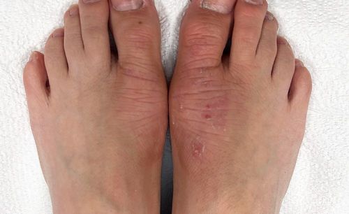 The patient was seen approximately 1 week later after their visit to urgent care reporting that the topical mupirocin and oral cephalexin use provided little change in the “rash” and no improvement in the itching. The rash was noted on the hands and feet as shown in the baseline photographs at the dermatology office. The presence of dry skin was also noted which has been mildly pruritic at times by history.