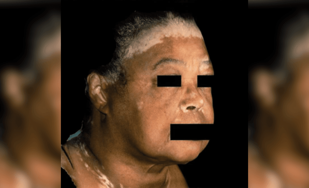 A 74-year-old Black American female with a history of hypertension, type 2 diabetes, and dyslipidemia presented to the dermatology clinic as an established patient visit for treatment of persistent generalized vitiligo on the face and body.