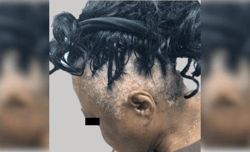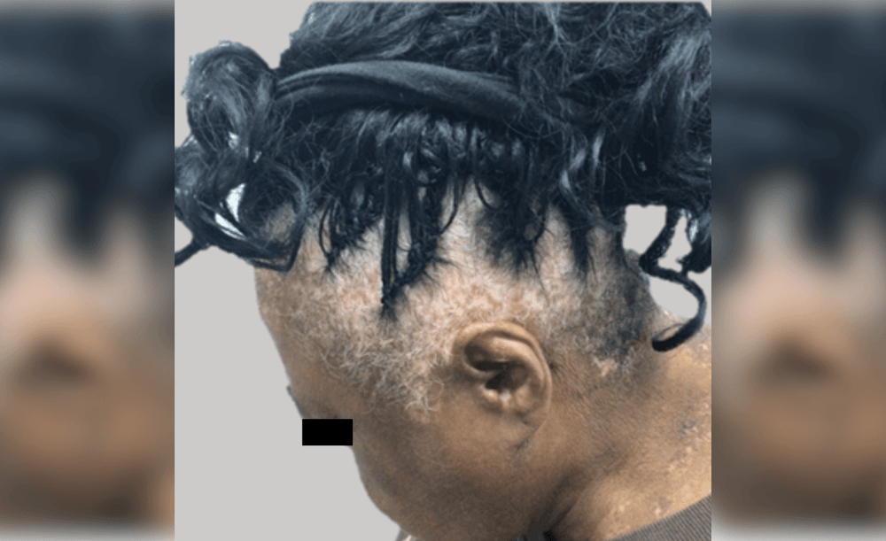 Focused exam of head and neck revealed depigmented macules with erythema on the scalp and back of neck with islands of pigmentation. The patient’s thyroid stimulating hormone, complete blood count with platelet count, and complete metabolic panel were all tested and within normal limits.